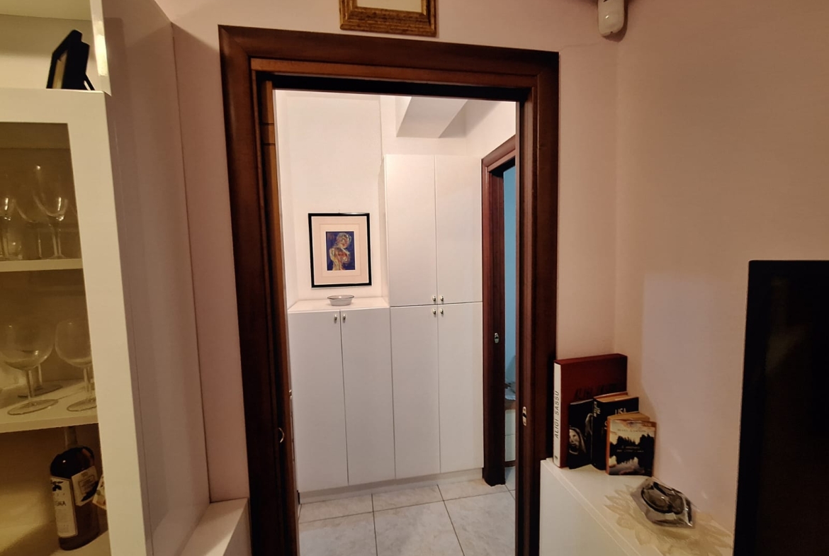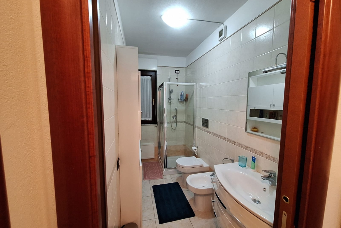 Pula, in pieno centro a 50 mt dal Comune, nuovo ampio bivano al piano rialzato di un mini condominio di due piani con affaccio riservato interno. L’appartamento è composto da salone, camera da letto, cucinotto, bagno e ampia terrazza a livello attrezzata con zona lavanderia. Dotato di arredamento di pregio, pompe di calore, serrande elettriche, antifurto, porta blindata e posto auto coperto in garage seminterrato chiuso.